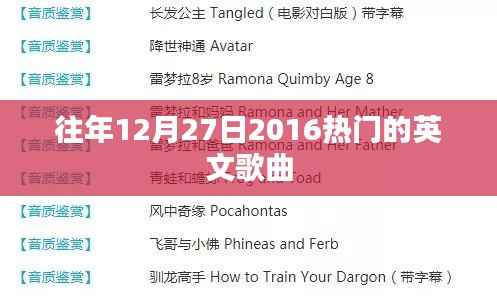 在回顾2016年音乐历史时,我们不能忽视那一年的热门英文歌曲,特别是在往年12月27日,许多经典英文歌曲在全球范围内赢得了极高的关注和赞誉,这篇文章将带你领略那些在这一日期炙手可热的英文歌曲。